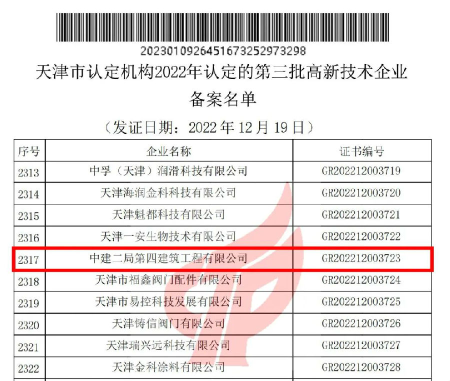 喜報!中建二局四公司通過國家高新技術企業認定!