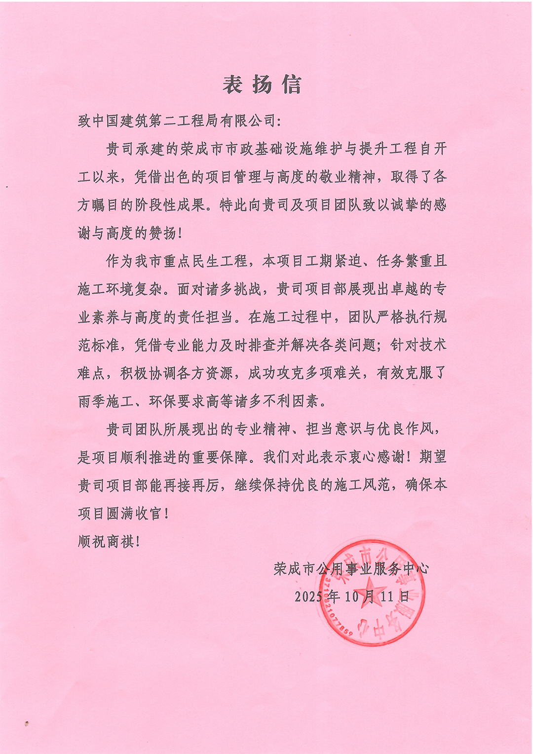 一起看看部分項目的表揚信吧